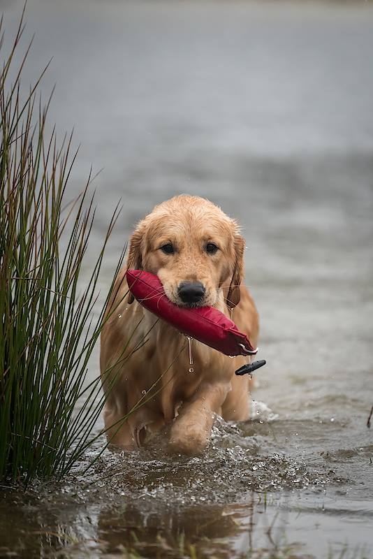 Deze prachtige Zwitserse reu, afkomstig uit de gerenommeerde kennel Jewelhope, kwam als pup bij Marianne en Peter de Haar van kennel v. ’t Keijsershof. Daar maakten wij ruim 7 jaar geleden al voor het eerst kennis met hem en waren meteen onder de indruk van zijn lieve karakter. Hij groeide uit tot een showkampioen met een zelfverzekerd, stabiel en sociaal karakter, precies zoals een Golden Retriever hoort te zijn. Naast zijn showcarrière heeft hij op SJP B-niveau getraind. Zwemmen en apporteren zijn zijn grootste hobby’s en tijdens het werk blijft hij altijd fijn in contact met zijn begeleider. Hij werkt met plezier, is leergierig en wil het graag goed doen, een heerlijke hond om mee te trainen. Het is een goudeerlijke hond: zachtaardig, knuffelbaar en niet snel van zijn stuk te brengen. Hij staat stevig in zijn schoenen en kan het uitstekend vinden met alle honden en mensen. Een prachtige hond, zowel van binnen als van buiten.